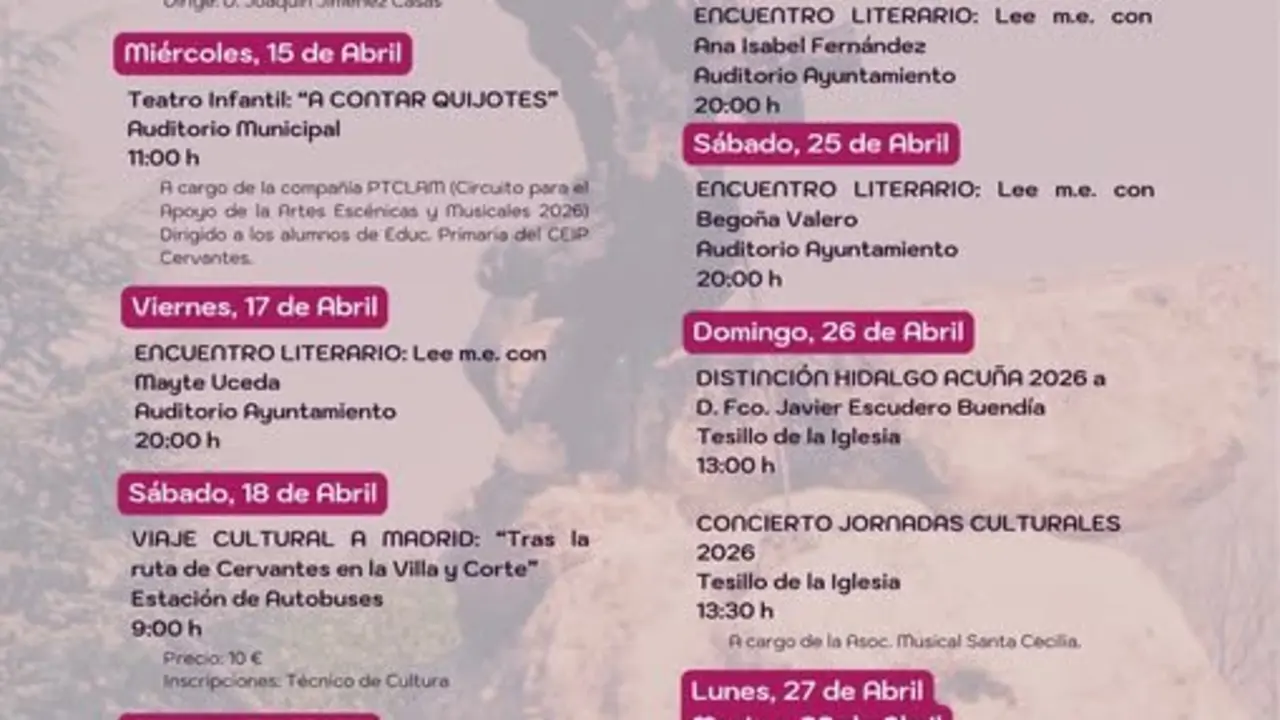 Miguel Esteban Miguel Esteban presenta sus jornadas culturales 2026 con una amplia programación para todos los públicos El Semanal 01/abr/26 11:30