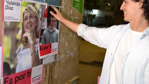 PEGADA DE CARTELES ELECCIONES GENERALES 23J EN ALCÁZAR DE SAN JUAN
