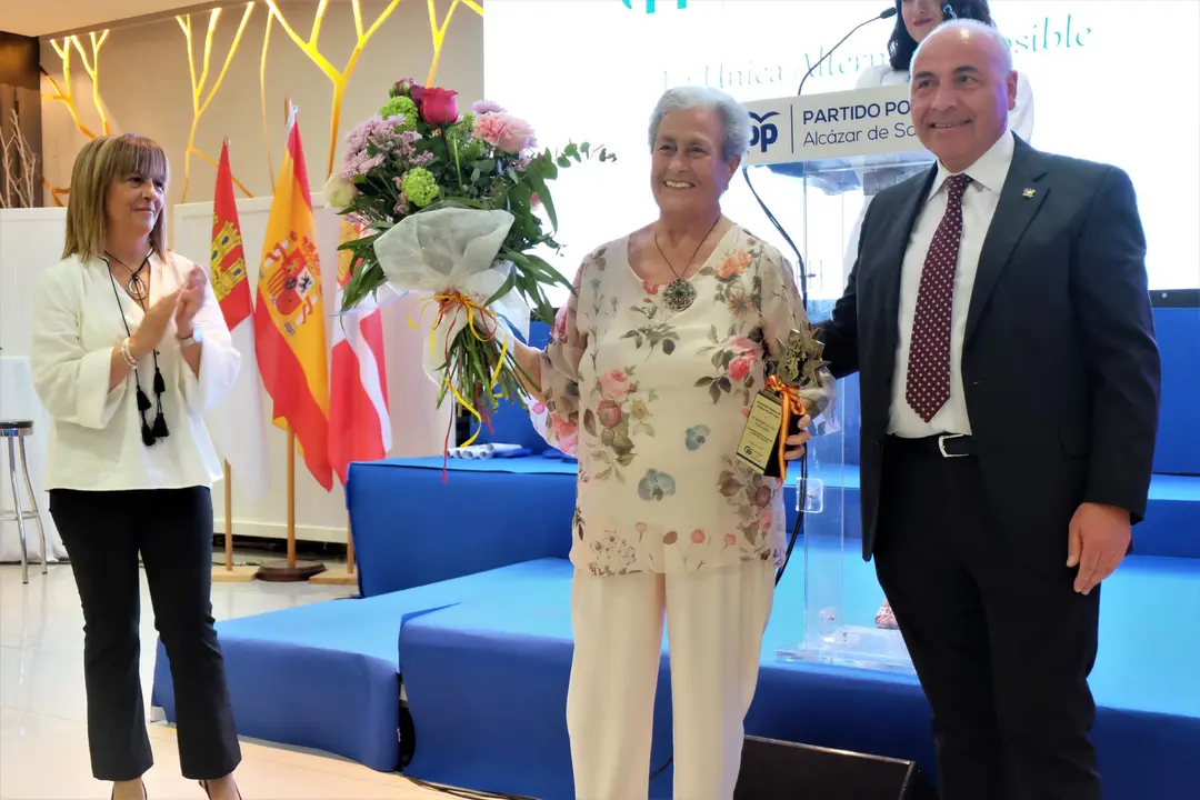 Entre los concejales, afiliados y personas homenajeadas este viernes en Alcázar de san Juan dentro del acto de presentación de la candidatura del Partido Popular en Alcázar de San Juan, especial atención dedicamos al reconocimiento realizado a ROSARIO LIZANO, afiliada histórica de la agrupación popular alcazareña que anoche recibió el cariño de todos sus compañeros y el reconocimiento de todo el público por sus muchas décadas de entrega al Partido Popular. Voluntaria en todo y siempre dispuesta, Rosario recibió un cálido abrazo y un bonito ramo de flores de manos de José Antonio Navarro y Loli Pinardo. Estas son algunas imágenes del reconocimiento