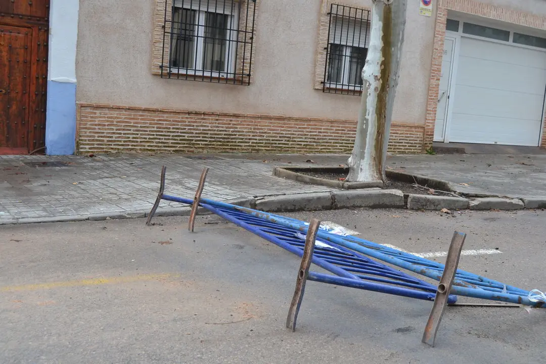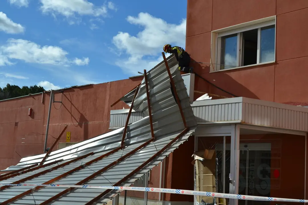 Entre las situaciones más graves se encuentra la caída del tejado metálico que cubría la entrada a Urgencias del Centro de Salud, cuya estructura ha cedido parcialmente sin causar heridos. La zona ha sido acordonada rápidamente por los servicios de emergencia, que trabajan en su desmontaje y retirada. Además, se ha procedido al corte del tráfico en varias vías importantes como la calle Recreo y la Avenida de Herencia, donde se han producido desprendimientos y caídas de árboles y chapas.