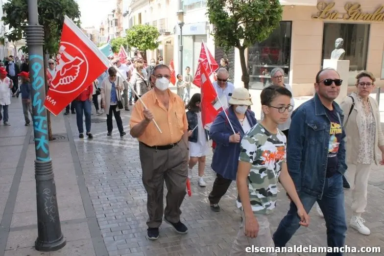 1º de Mayo en Alcázar: Decenas de personas se manifiestan bajo el lema “Subir salarios, contener precios, más igualdad”