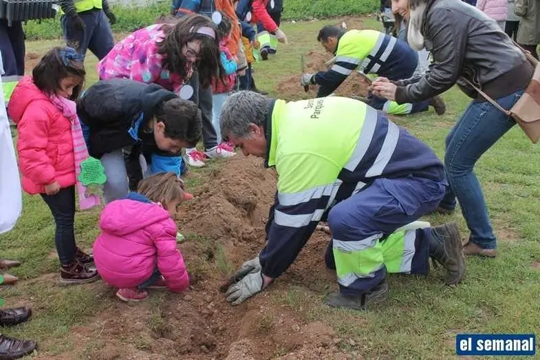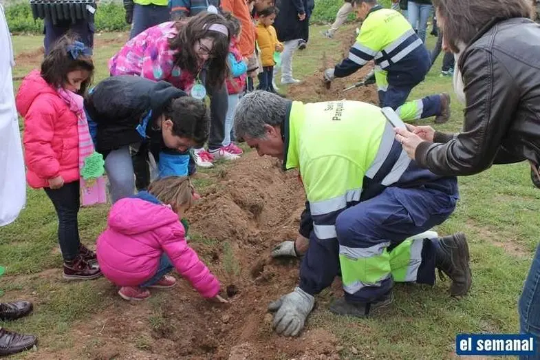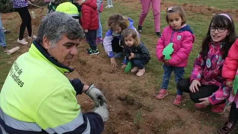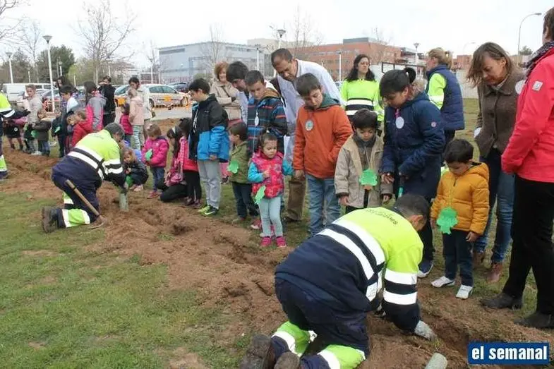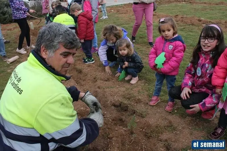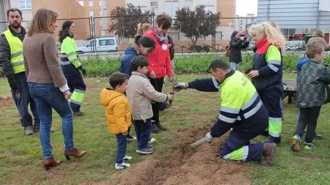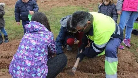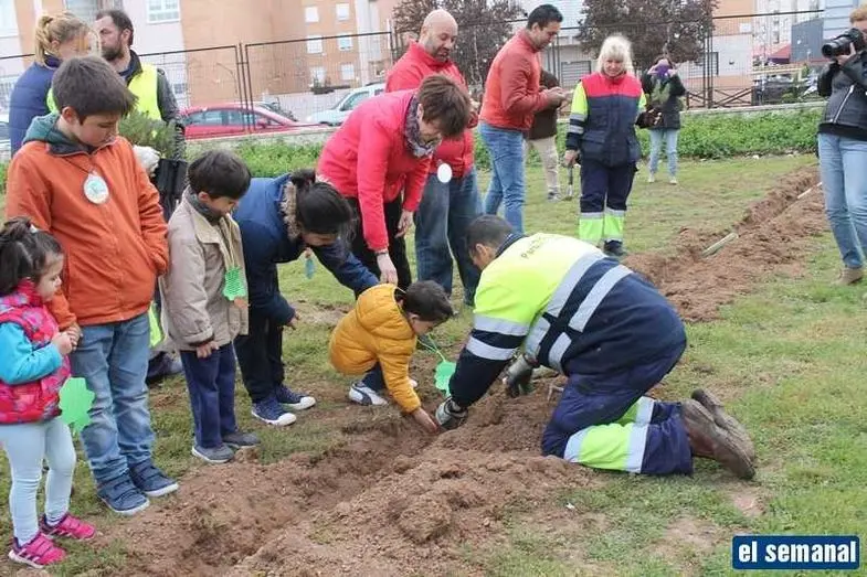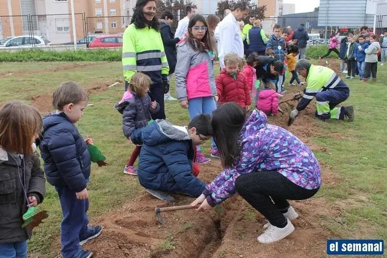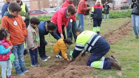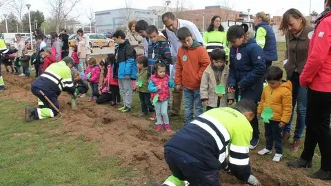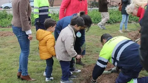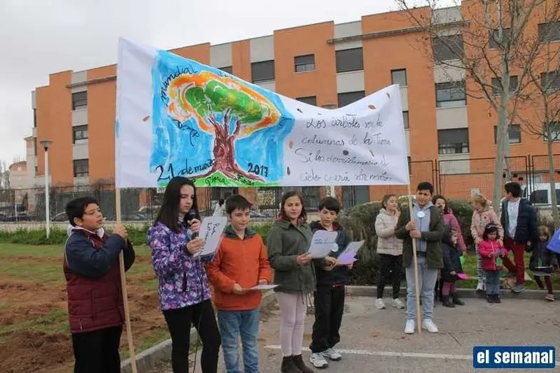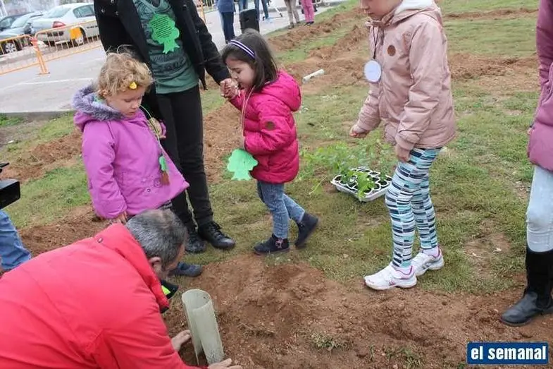 Alumnos del colegio Gloria Fuertes realizan una plantación de árboles para conmemorar el Día del Árbol y el Día de la Poesía