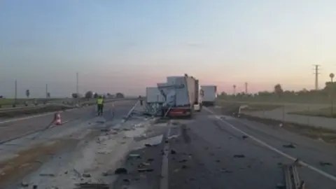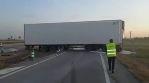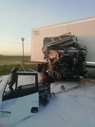 Aparatoso accidente en la A4 al colisionar dos camiones