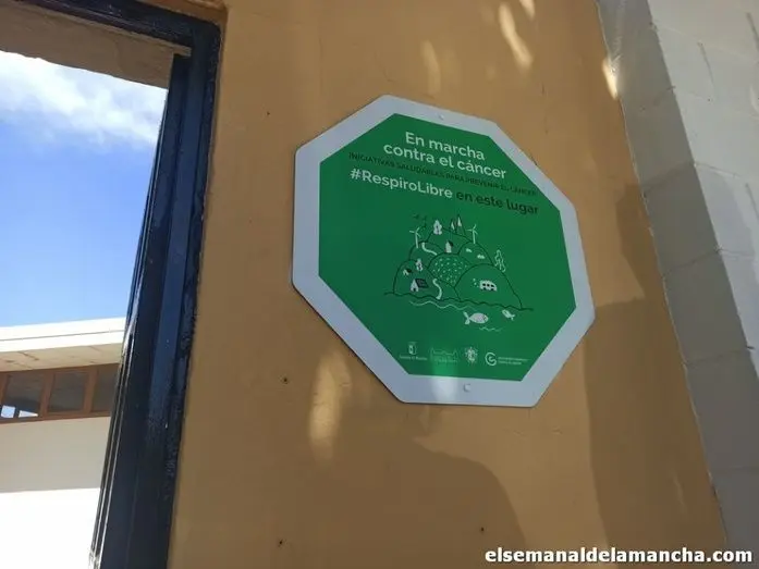 Campo de Criptana instala el primero de los 37 carteles de ‘Espacios sin humo’ en la Piscina Municipal