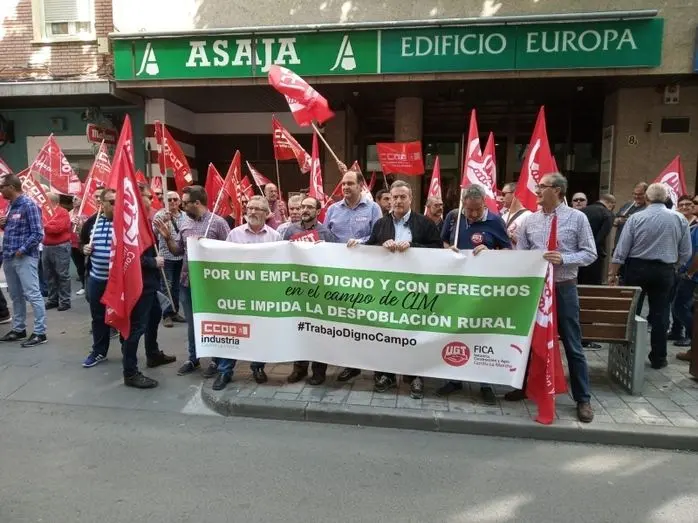 CCOO y UGT se manifiestan ante Asaja-Ciudad Real para exigir que todas y todos los trabajadores del Campo de la provincia cobren al menos el SMI