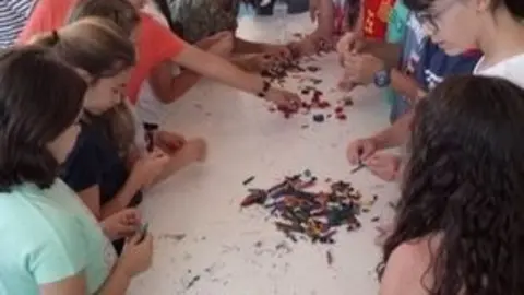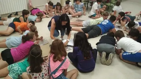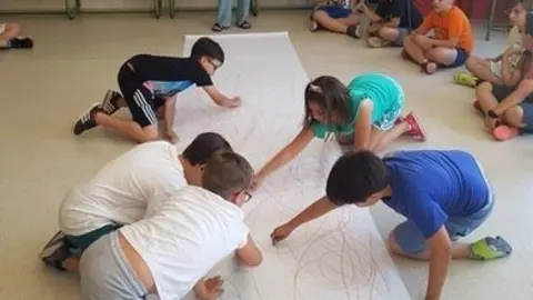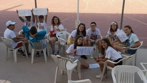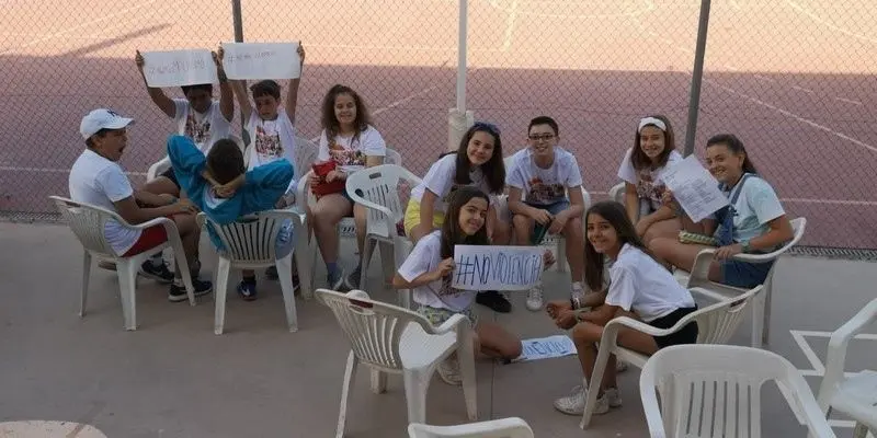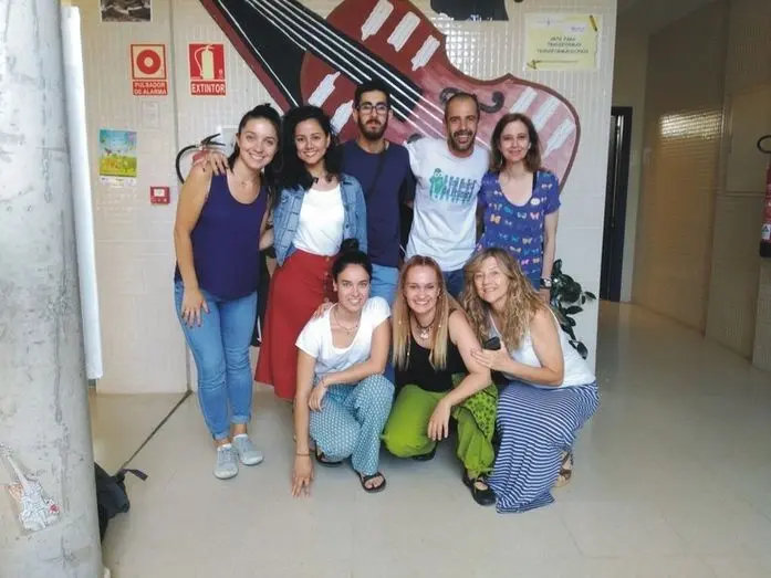 Concentración de artistas de la Fundación Yehudi Menuhin en la jornada de puertas abiertas del colegio alcazareño Jardín de Arena
