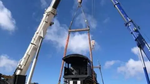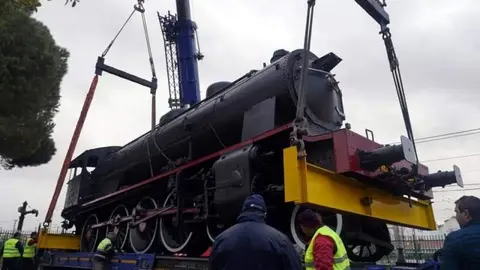 Concluye la instalación de la locomotora clásica en la rotonda de la antigua N420