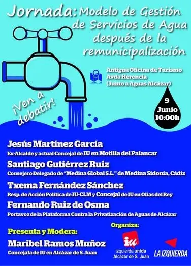 Debate abierto a toda la ciudadanía sobre "la gestión del agua después de la remunicipalización", este sábado en Alcázar
