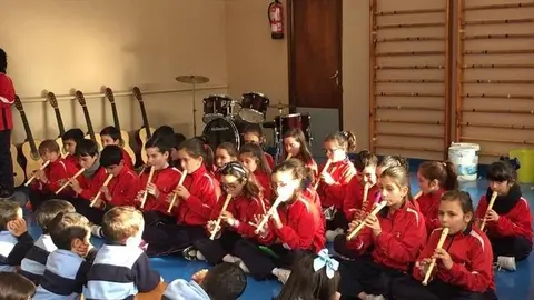 El alumnado del colegio alcazareño Sagrada Familia celebra el Día de la Música