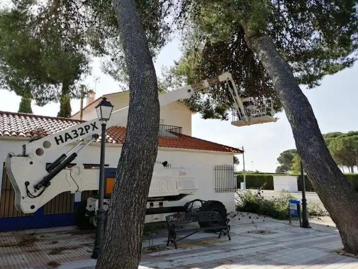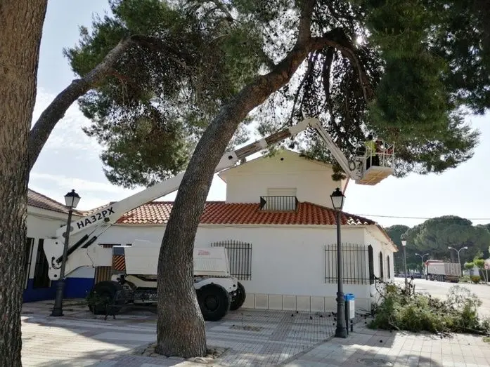 El Ayuntamiento de Arenales realiza tareas de poda en los pinos de la entrada al consistorio