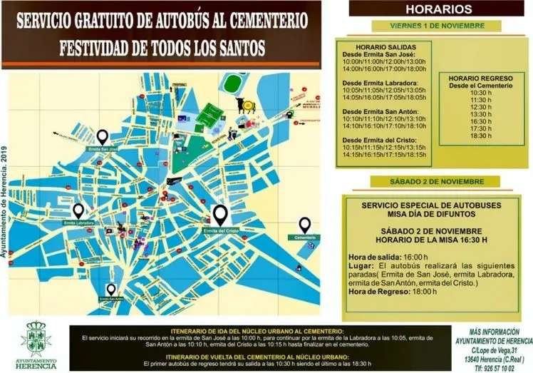 El Ayuntamiento de Herencia mantiene el servicio gratuito de autobuses para el Día de Los Santos