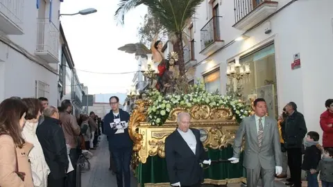 El paso de Jesús Orando en el Huerto procesiona, ya restaurado, por las calles de Alcázar en el Jueves Santo