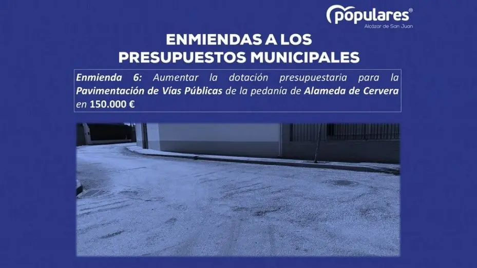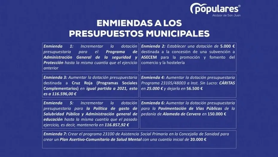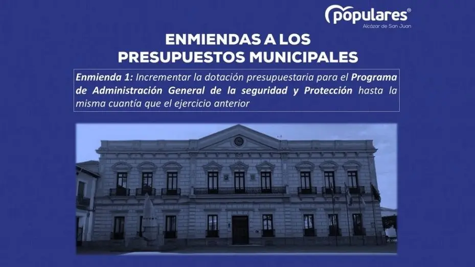 El PP de Alcázar presenta siete enmiendas al Presupuesto municipal