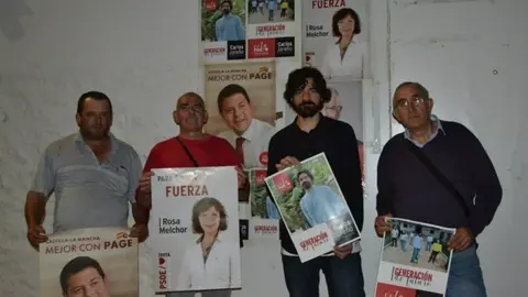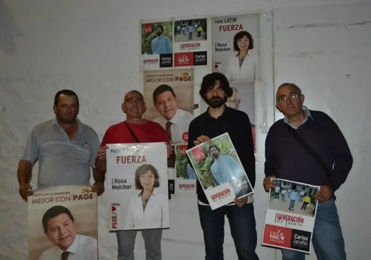 El PSOE de Cinco Casas comienza la campaña electoral con el candidato Carlos Jareño en la tradicional pegada de carteles