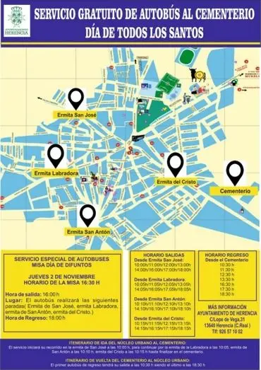 El servicio especial de autobús al Cementerio de Herencia se extenderá hasta el día 2 para asistir a la Misa de los Santos Difuntos