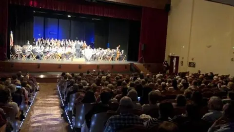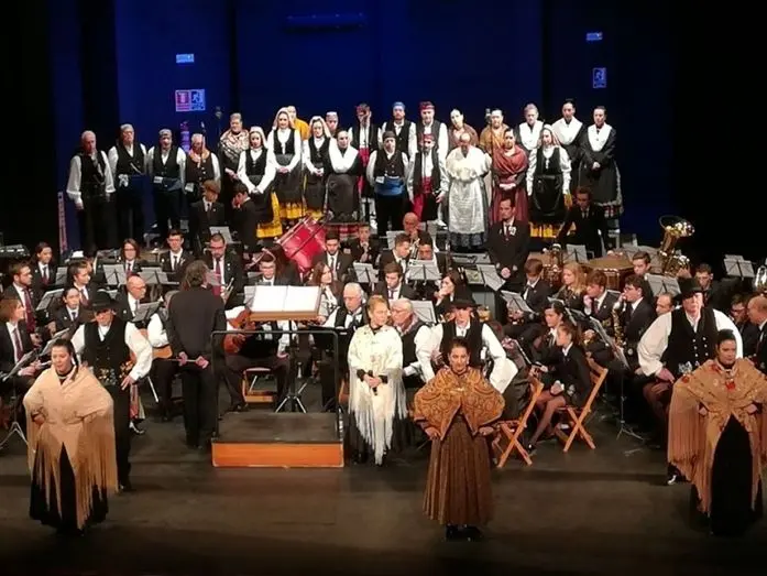 Emotivo espectáculo en Alcázar de la Banda de Música y los Coros y Danzas que puso en pie a los asistentes