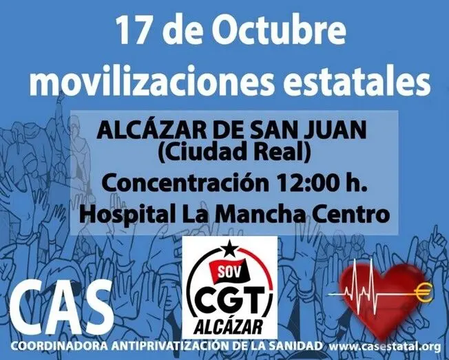 Este sábado, concentración en la puerta del Hospital La Mancha Centro por la sanidad pública