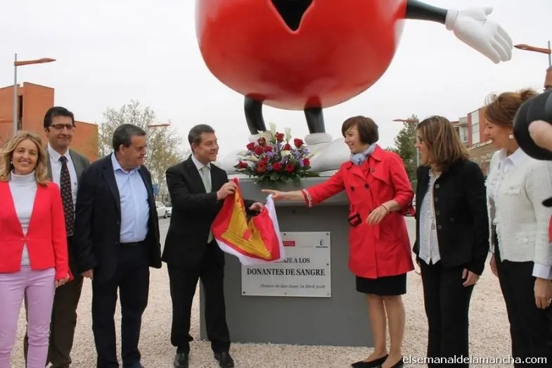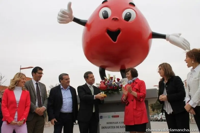 García-Page inaugura la escultura de "Gotito" frente al Hospital de Alcázar en reconocimiento a la labor de los donantes de sangre