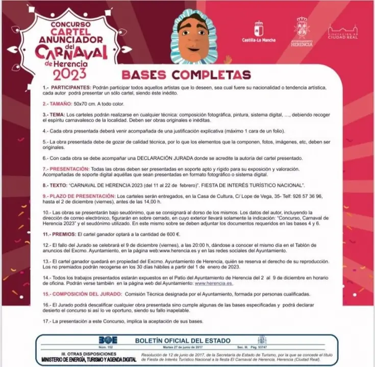 Herencia pone en marcha la maquinaria del Carnaval 2023 con el concurso del cartel anunciador