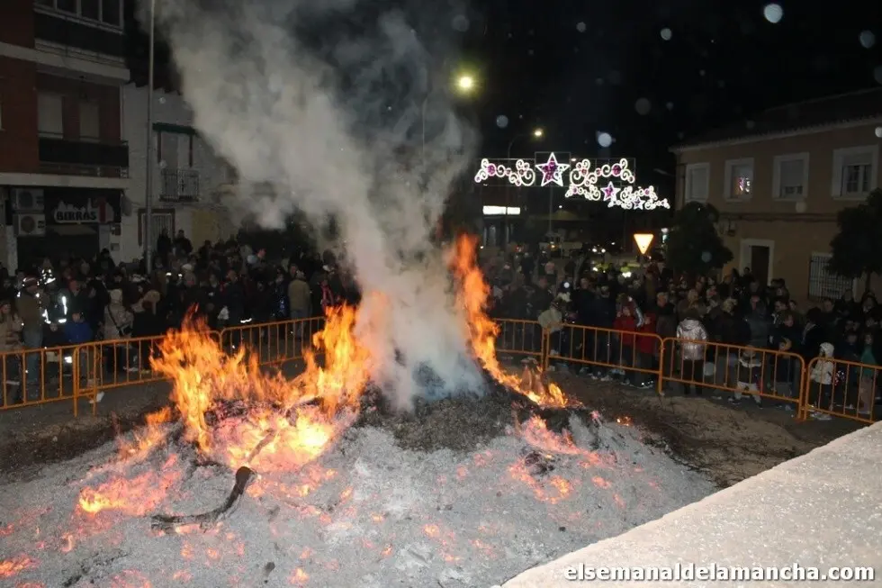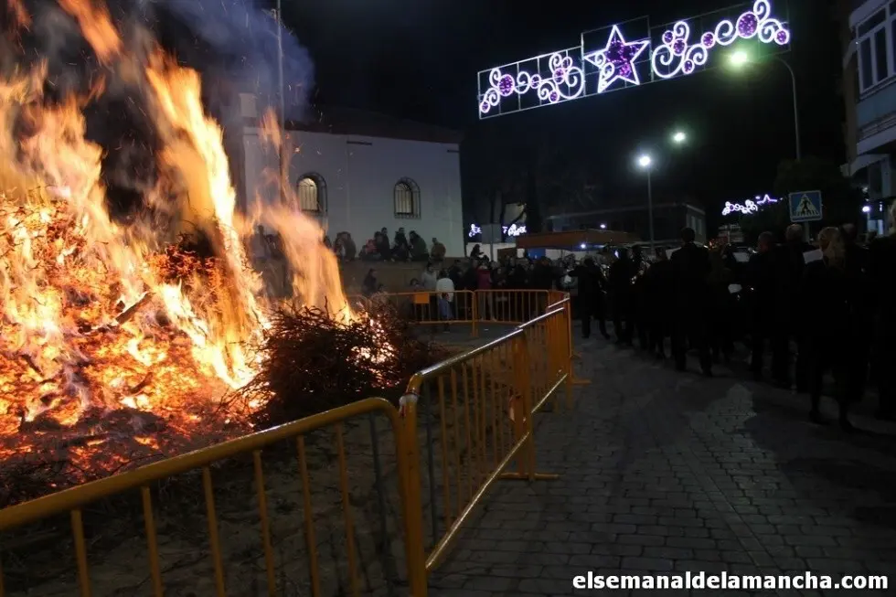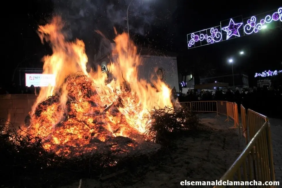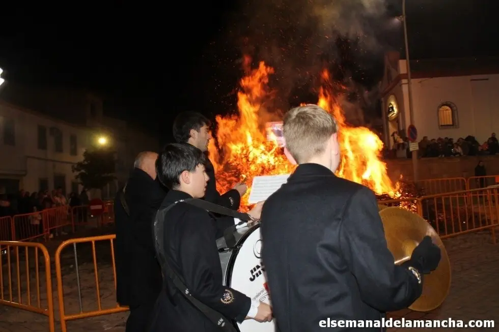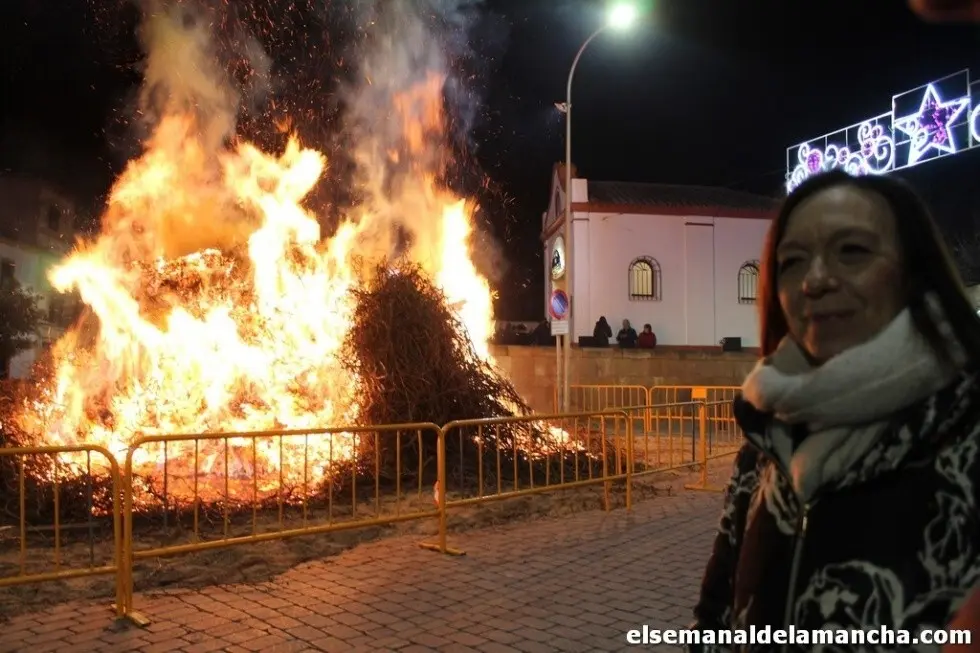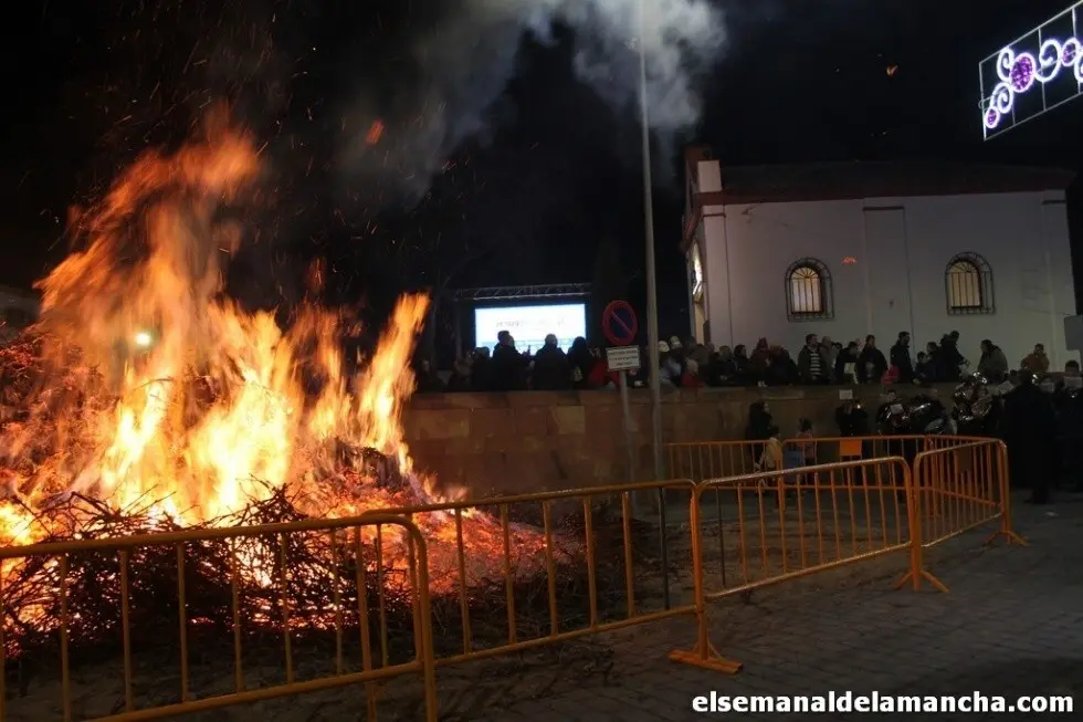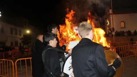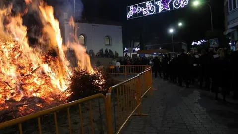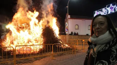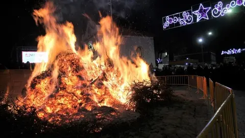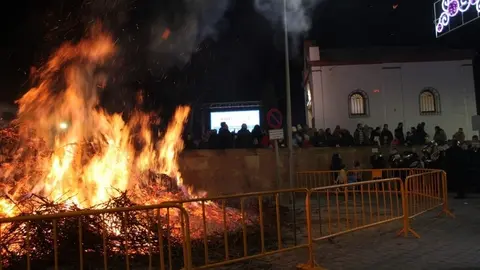 Hoguera y fuegos artificiales en las fiestas de San Sebastián