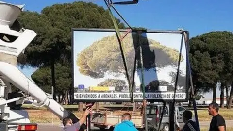 Instalados dos carteles de Bienvenida a Arenales y en contra de la violencia de género