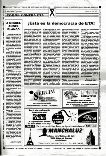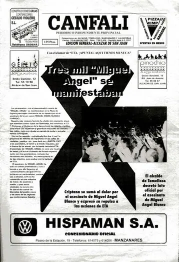Julio de 1997: Alcázar salió a la calle para condenar con rabia el asesinato de Miguel Ángel Blanco
