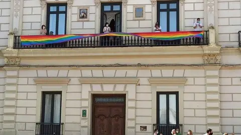 La bandera LGTBI ya ondea en la fachada del Ayuntamiento de Alcázar para reclamar la visibilidad del colectivo