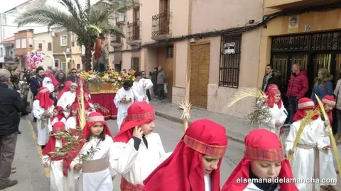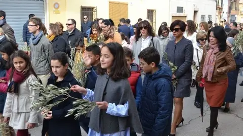 "La Borriquilla" procesiona entre palmas, ramas de olivo y niños vestidos de hebreos
