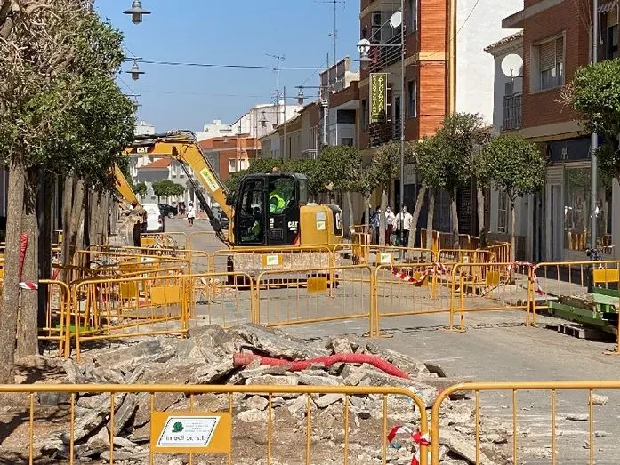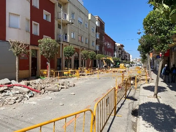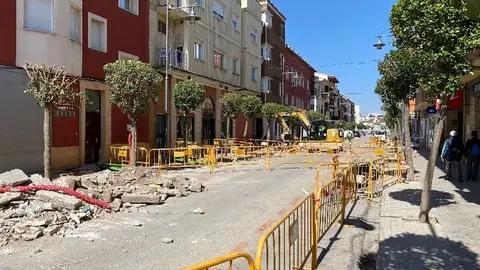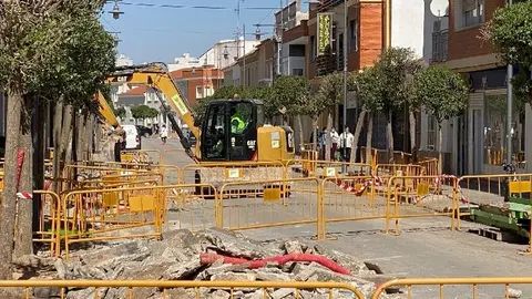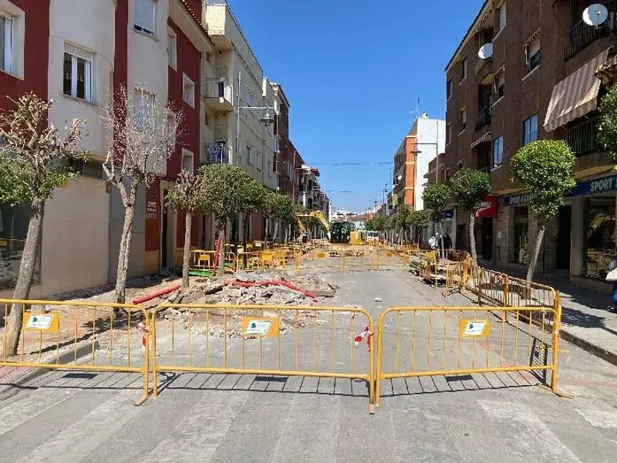 La Calle General Benavent García cortada al tráfico por obras para realizar una remodelación y mejora de las instalaciones y acerado