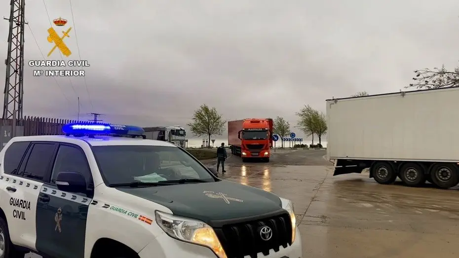 La Guardia Civil escolta un convoy masivo de 115 camiones hasta el puerto de Cartagena