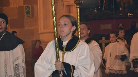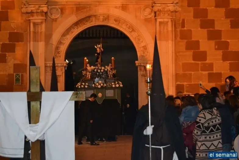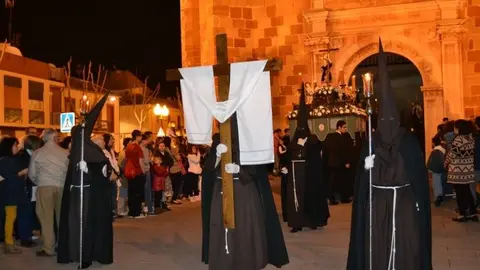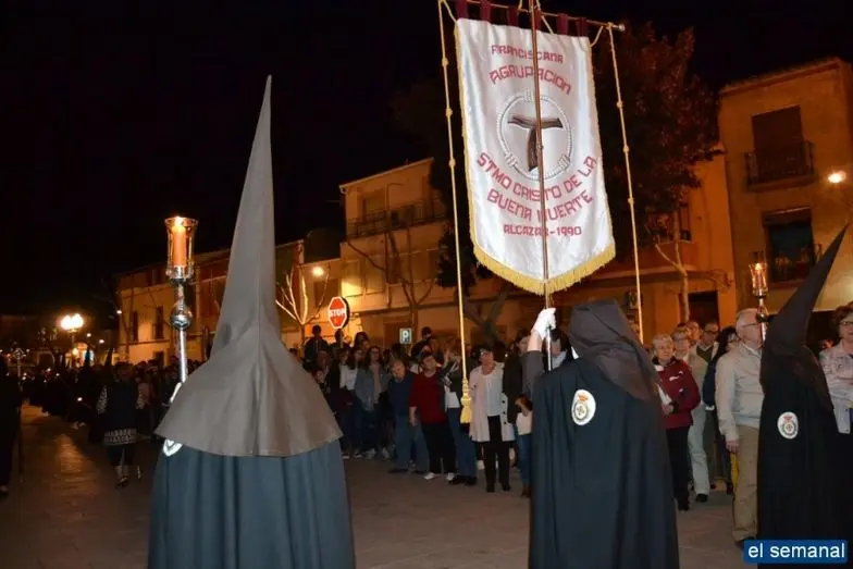 La Hermandad de la Buena Muerte sale en procesión por las calles de Alcázar en el Martes Santo