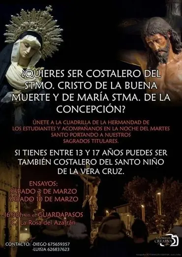 La Hermandad de "Los Estudiantes" de Alcázar busca costaleros para sus Sagrados Titulares