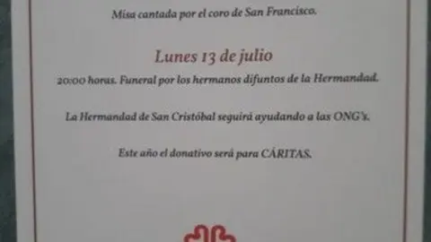 La Hermandad de San Cristóbal de Alcázar decide finalmente no celebrar la procesión