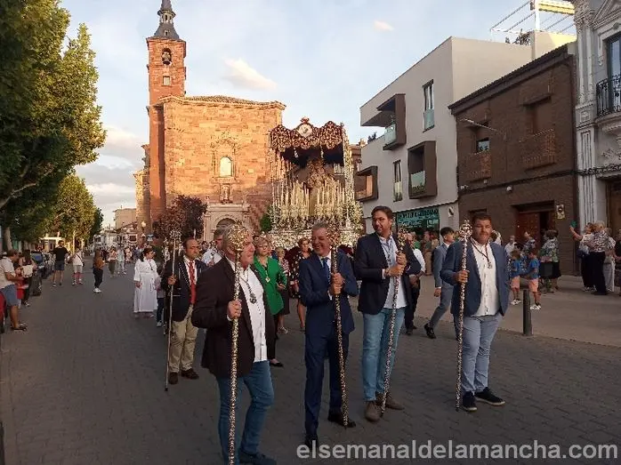 La imagen de la Dolorosa procesiona en el 80 aniversario de su llegada a Alcázar