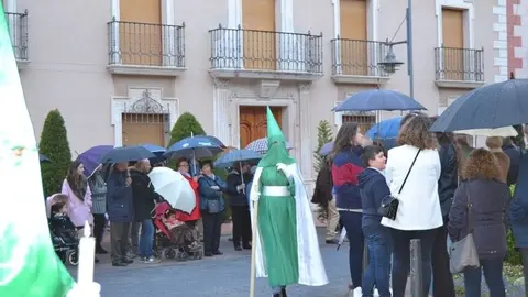 La lluvia impide que se realice el recorrido completo de la procesión de Jesús Orando en el Huerto