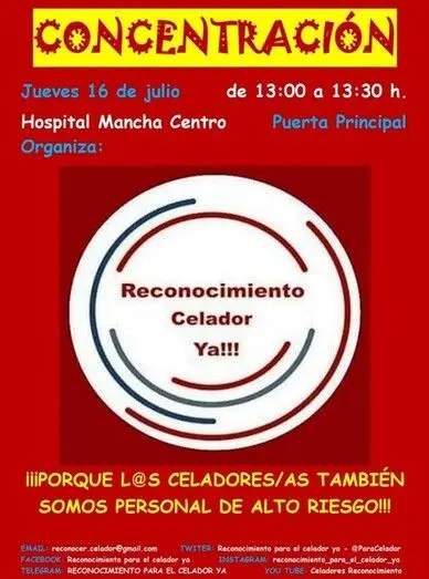 La Plataforma “Reconocimiento para el Celador Ya!” convoca una concentración el jueves en la puerta del Mancha Centro