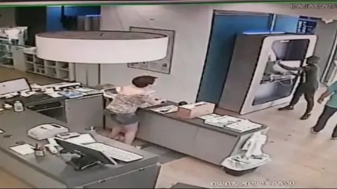La policía busca a un individuo que intentó arrancar un expositor de teléfonos móviles en la tienda de Mata de la Castelar