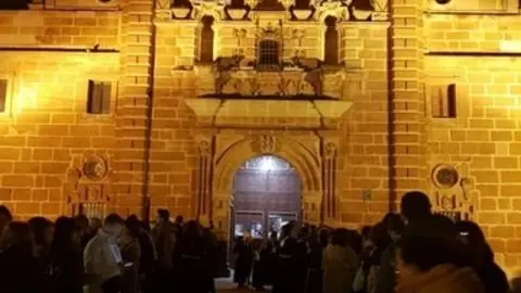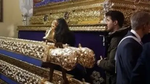 La procesión de Jesús sale de la iglesia de La Trinidad al amanecer