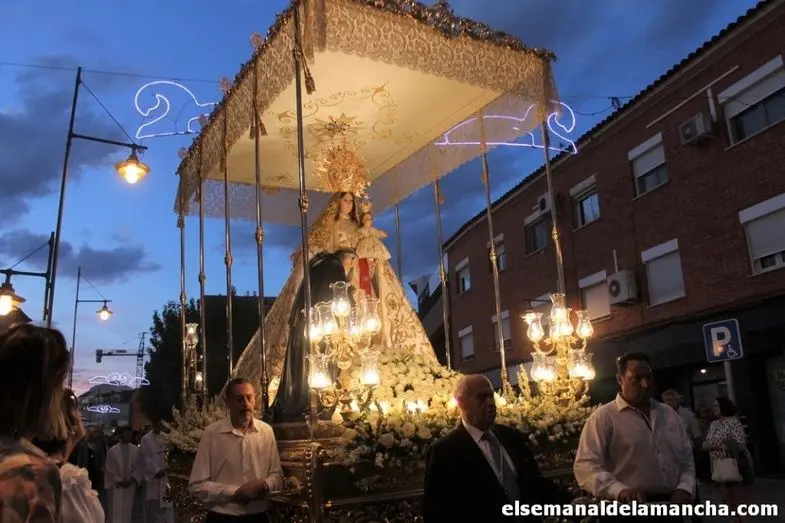 La procesión de la Virgen del Rosario, con cambio de itinerario, cierra los actos de la Feria de Alcázar