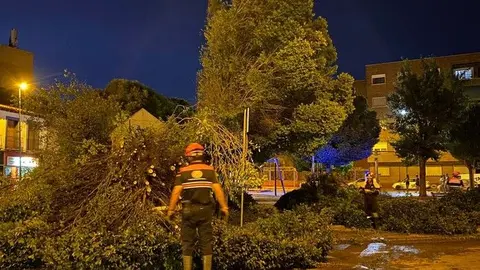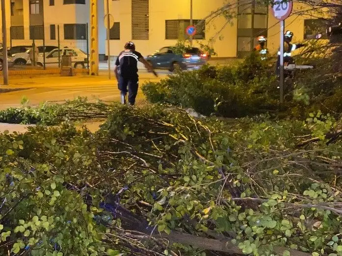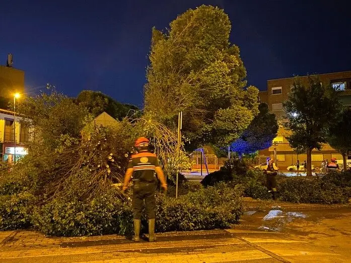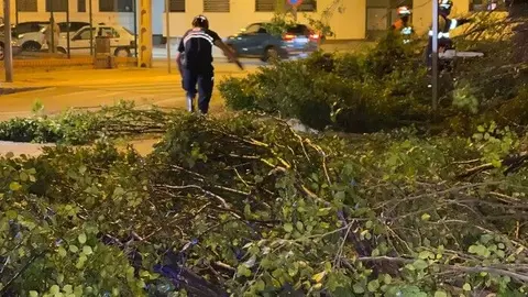 La tormenta de granizo, lluvia y viento deja en Alcázar árboles y ramas caídas y balsas de agua en la calzada