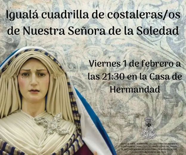 Las costaleras de Nuestra Señora de la Soledad celebran este viernes la Igualá