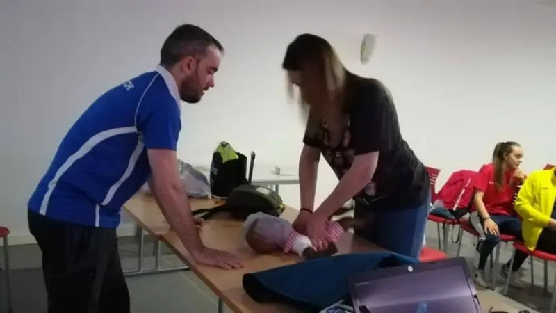 Las escuelas y los clubes deportivos se forman en el uso del desfifrilador