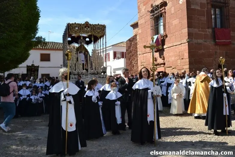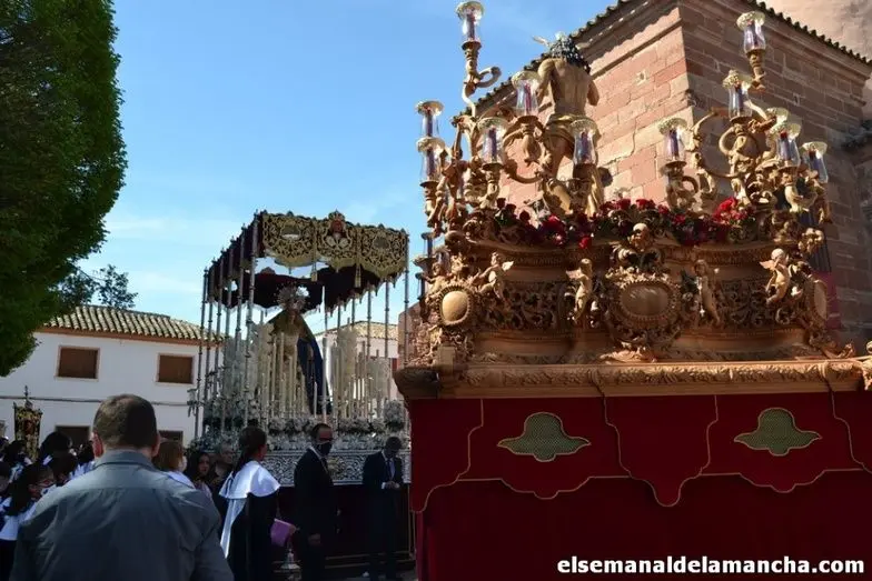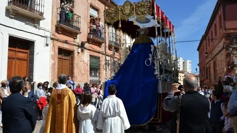 Las imágenes de Jesús Resucitado y Nuestra Señora de la Soledad procesionan desde Santa María en el Domingo de Resurrección