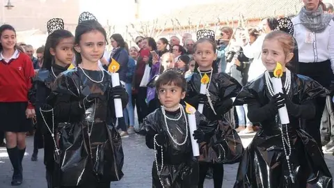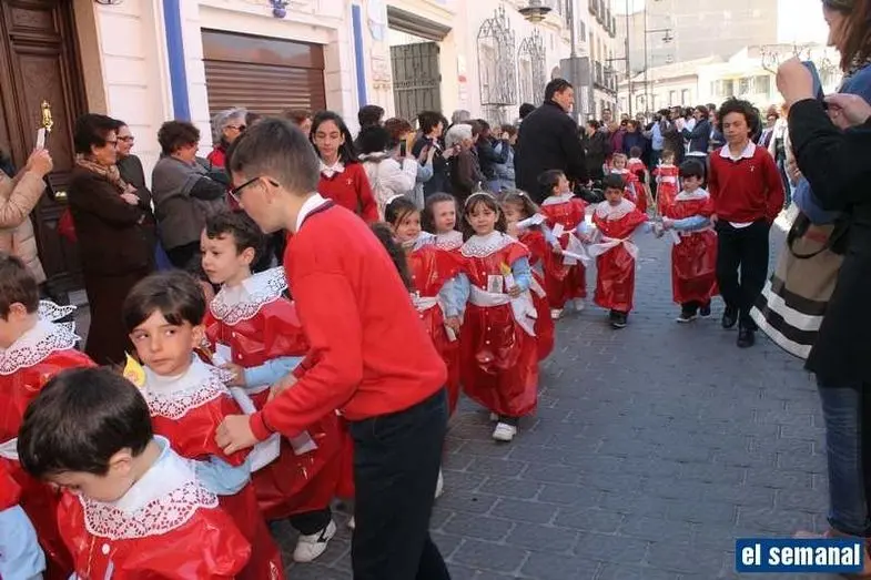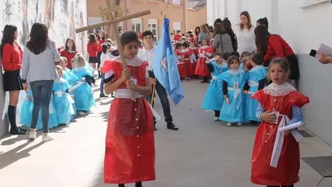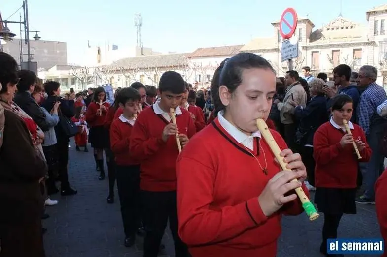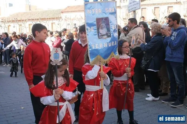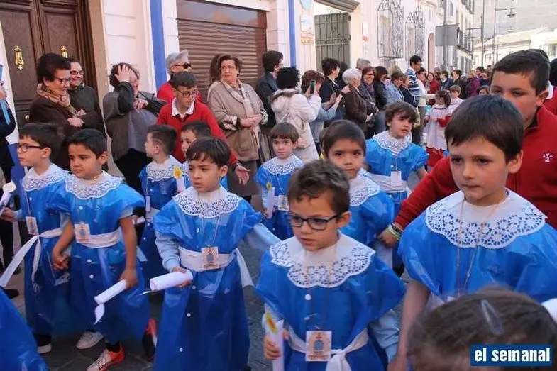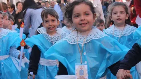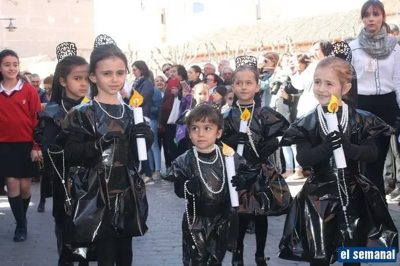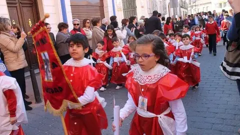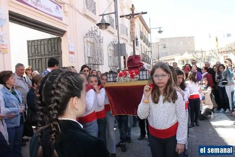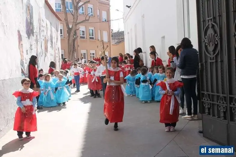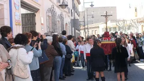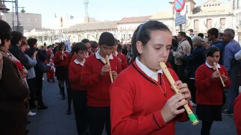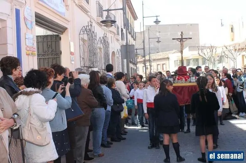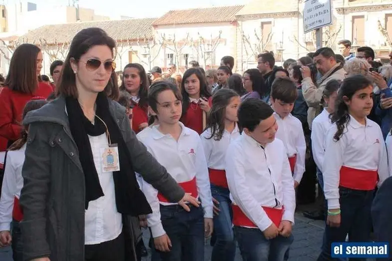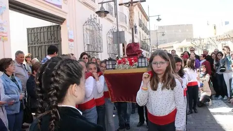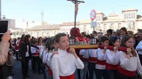 Los alumnos de la SAFA procesionan por las calles de Alcázar con las imágenes de Nuestro Padre de la Caridad y Nuestra Señora de la Ternura
