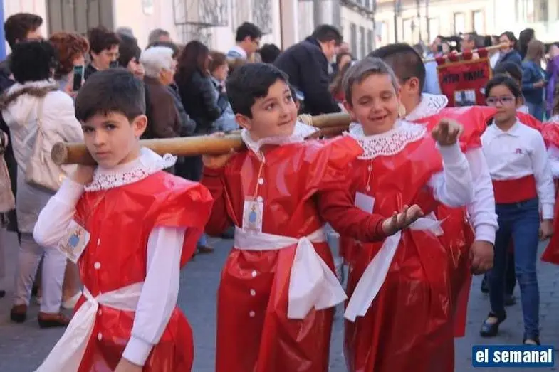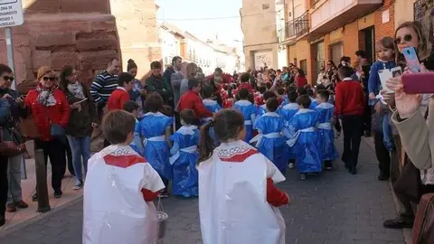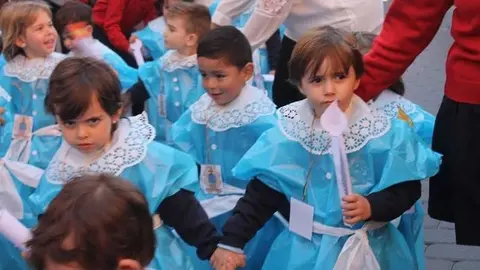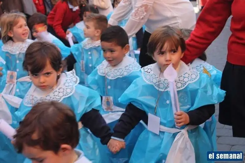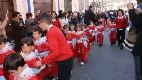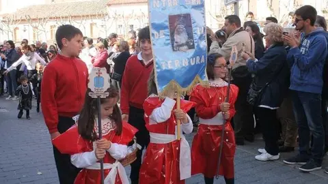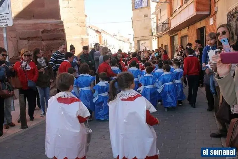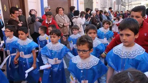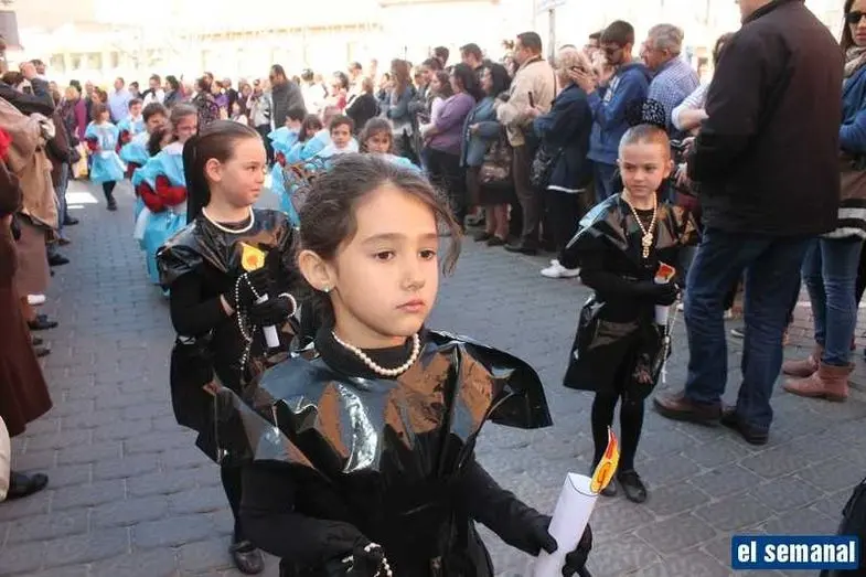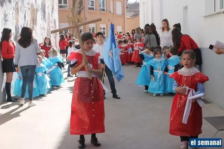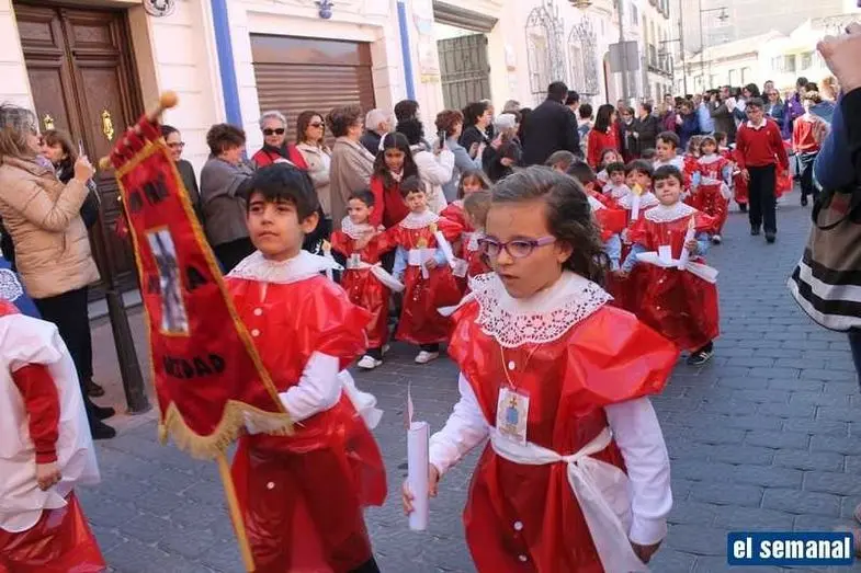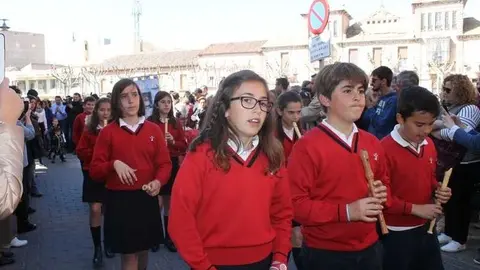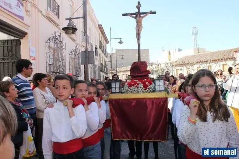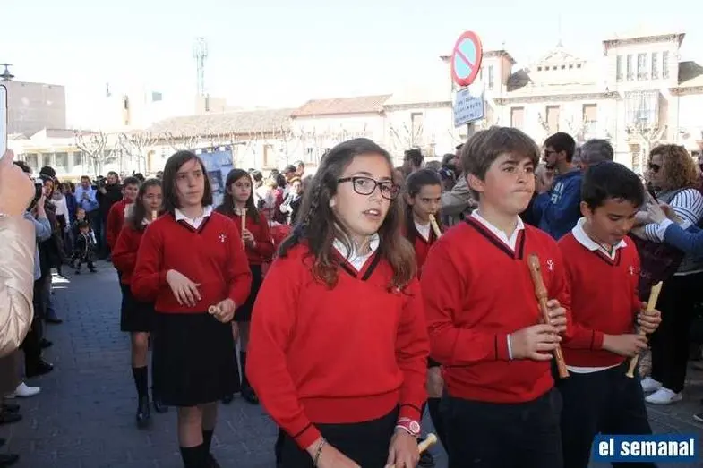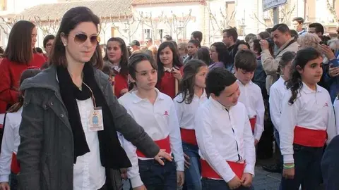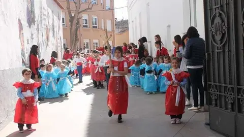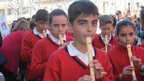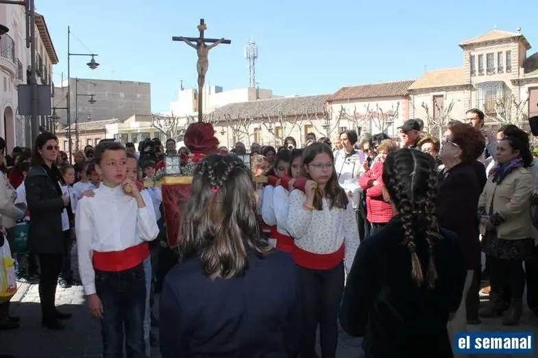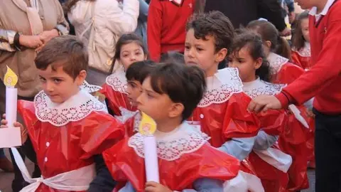 Los alumnos de la SAFA procesionan por las calles de Alcázar con las imágenes de Nuestro Padre de la Caridad y Nuestra Señora de la Ternura
