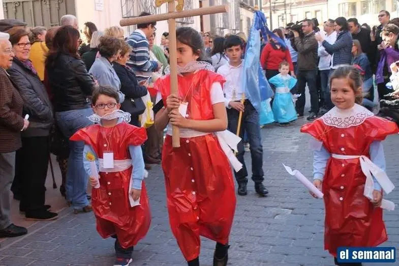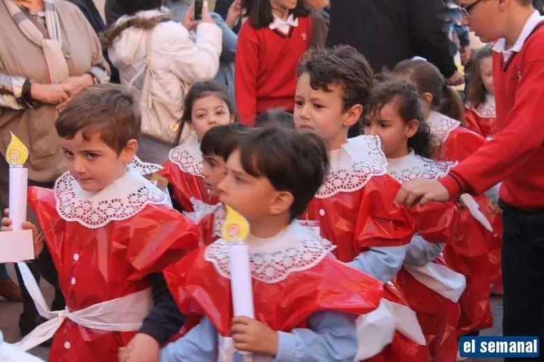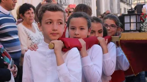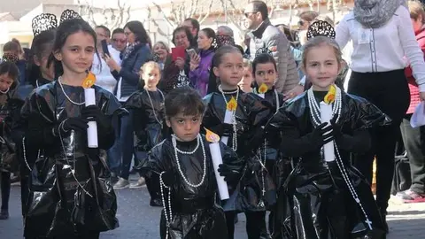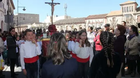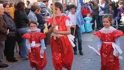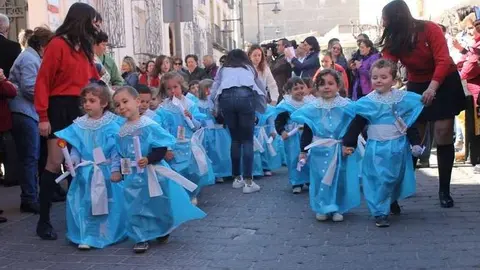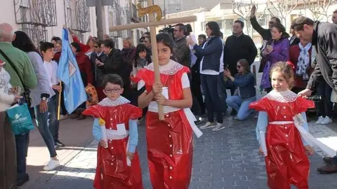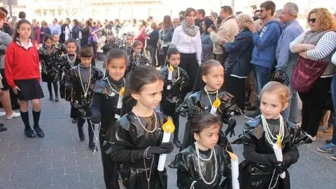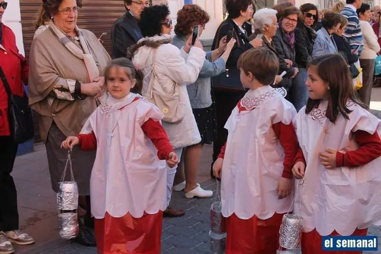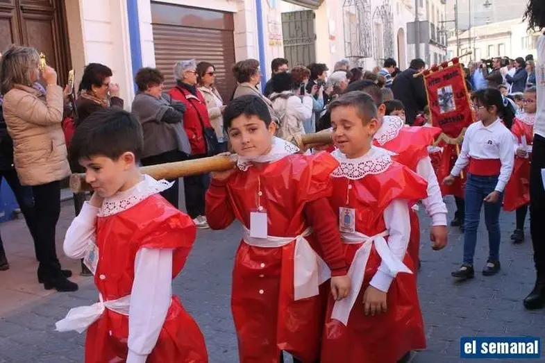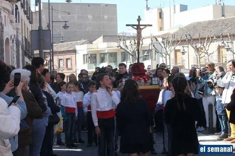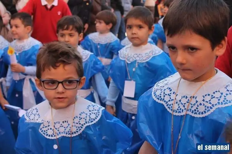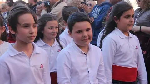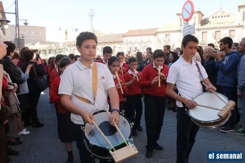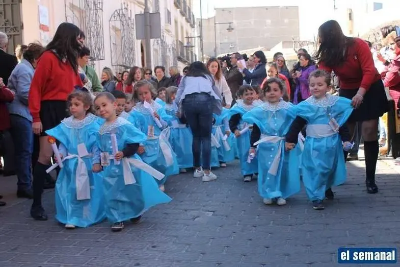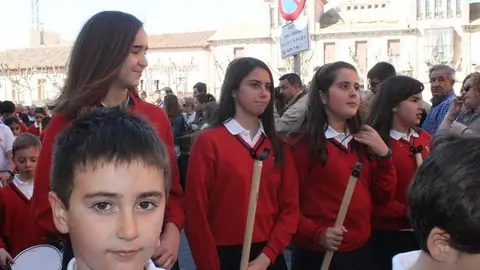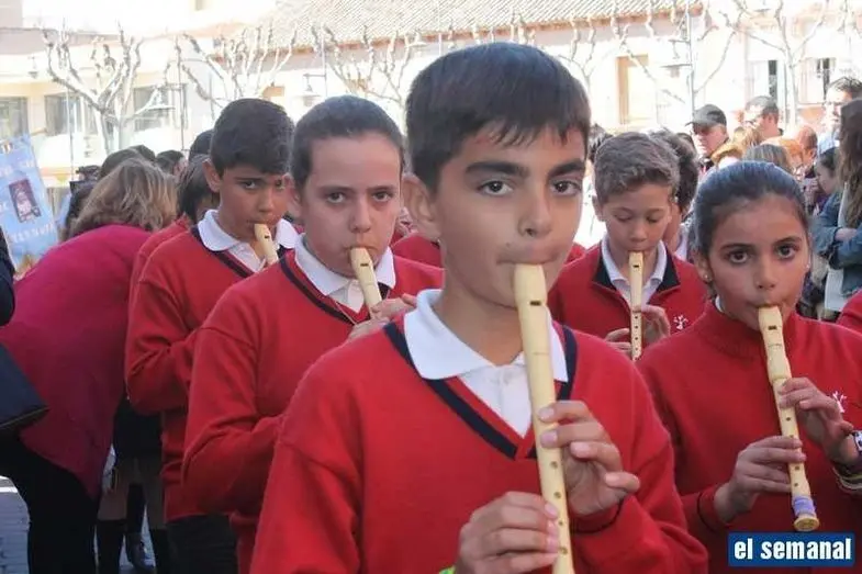 Los alumnos de la SAFA procesionan por las calles de Alcázar con las imágenes de Nuestro Padre de la Caridad y Nuestra Señora de la Ternura