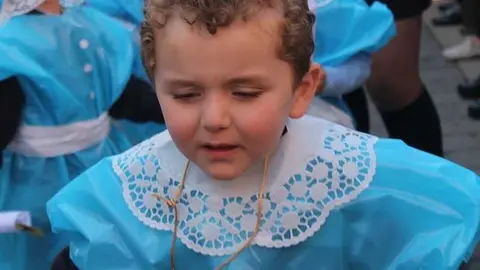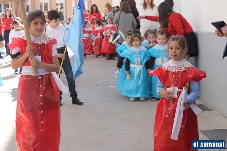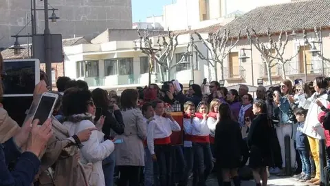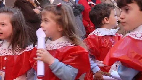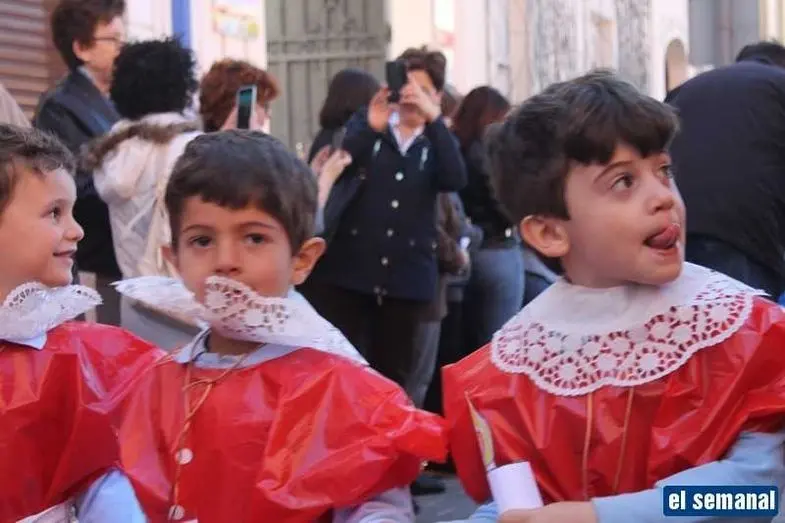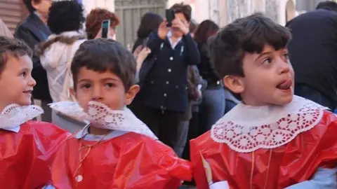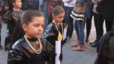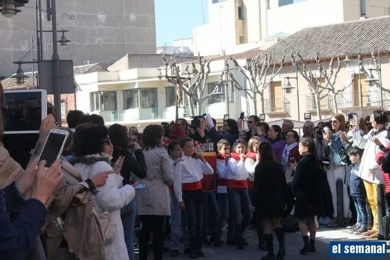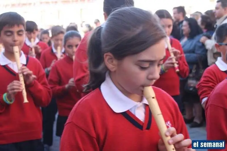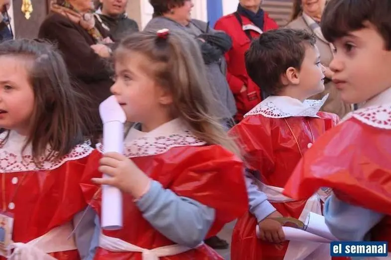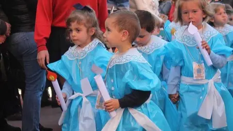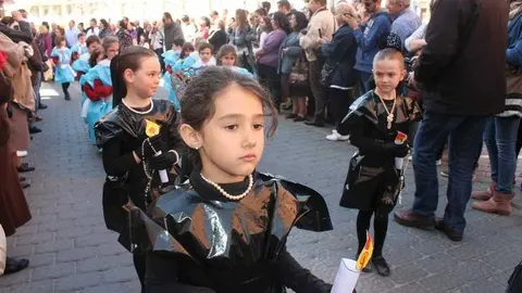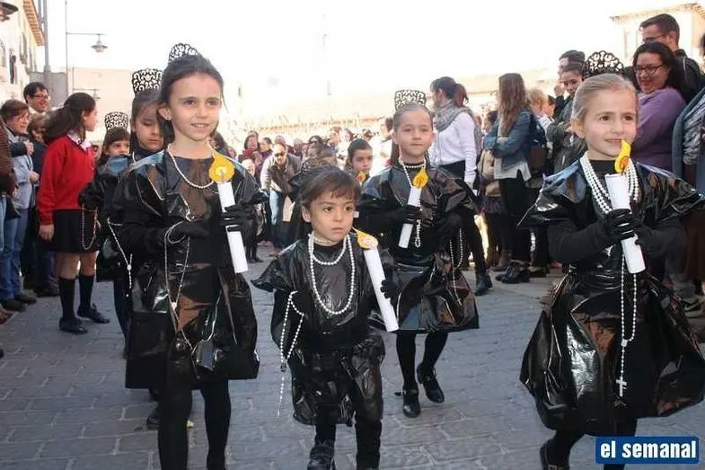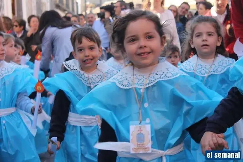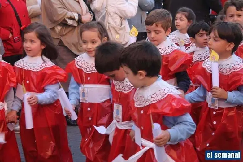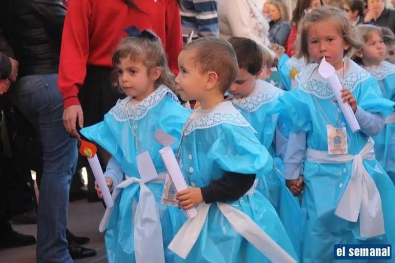 Los alumnos de la SAFA procesionan por las calles de Alcázar con las imágenes de Nuestro Padre de la Caridad y Nuestra Señora de la Ternura