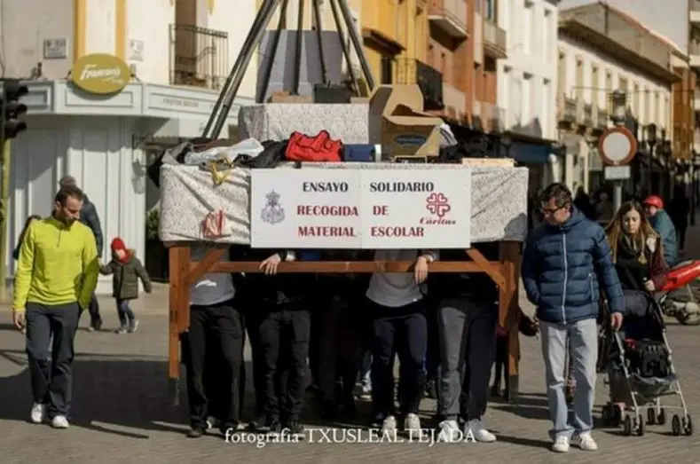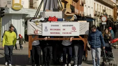 Los costaleros de la Virgen de la Soledad recogieron 60 euros y numeroso material escolar en su Ensayo Solidario