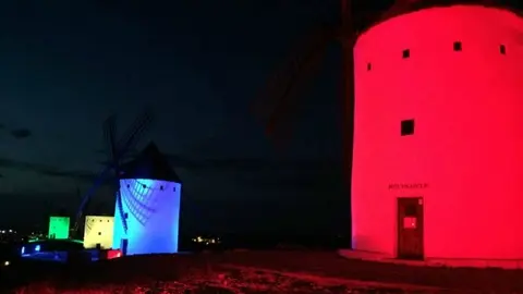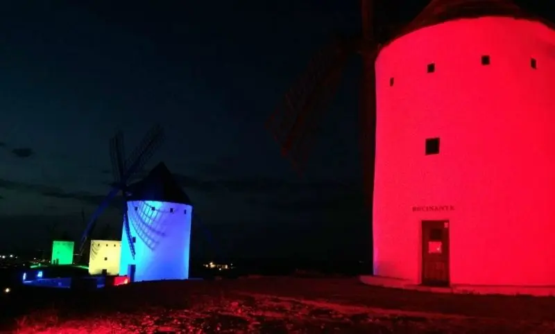 Los molinos de Alcázar se iluminon de verde con motivo del Día Mundial de la Salud Mental