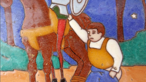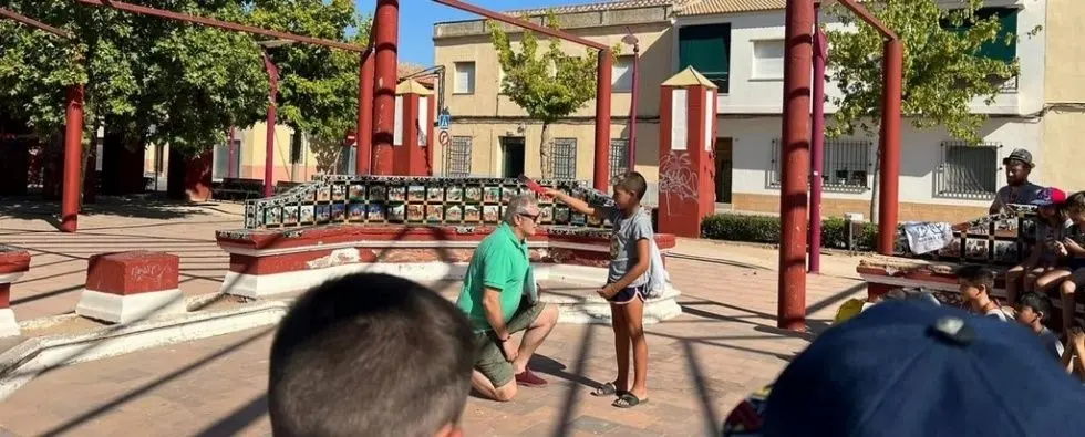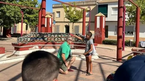 Los niños del Centro de Estudios Tribu visitan los azulejos del Quijote del parque Cervantes